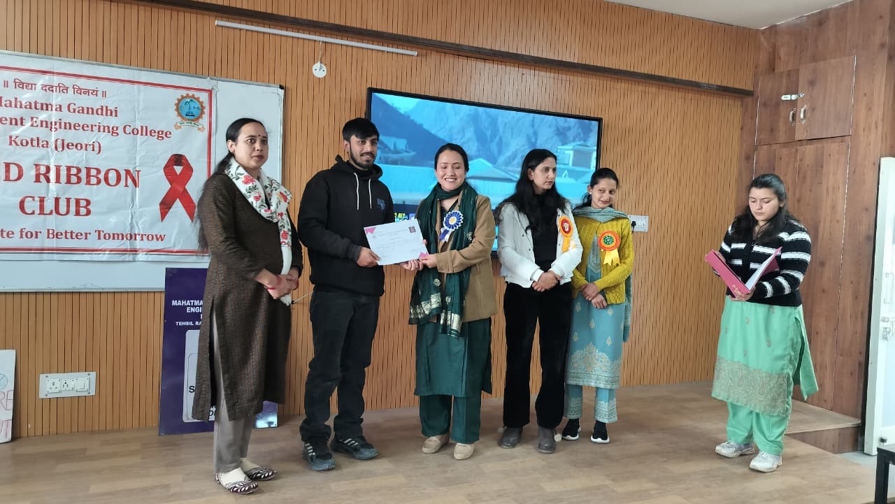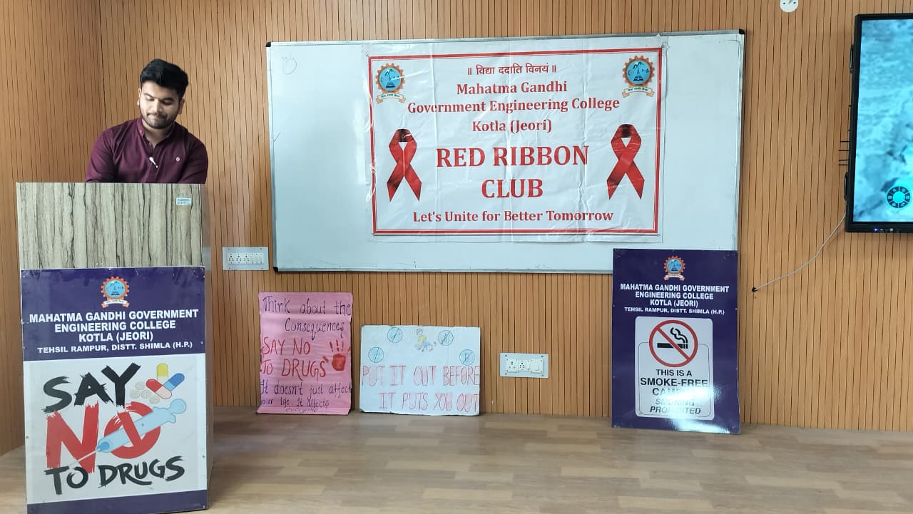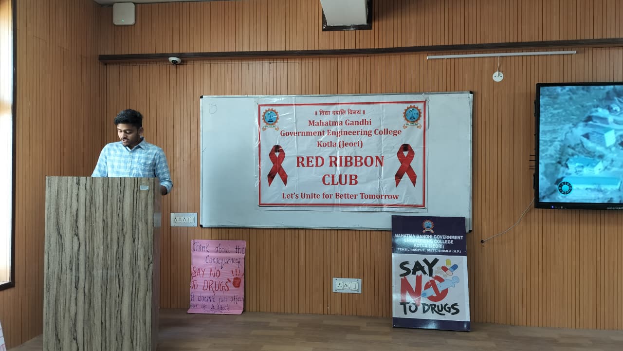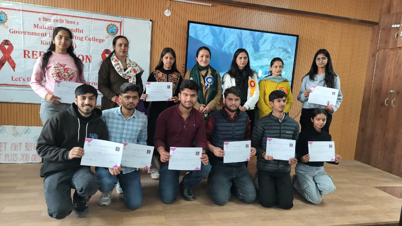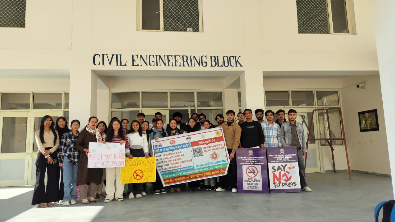 Mahatma Gandhi Government Engineering College celebrated Youth Day with great enthusiasm under the Red Ribbon Club, aiming to promote social awareness, leadership, and positive energy among youth. The event began with a lamp-lighting ceremony by dignitaries and was graced by distinguished guests from NGOs, health departments, and local ASHA workers. The programme featured cultural performances, a declamation competition, songs, a pledge on HIV awareness, and an awareness session on health and social issues. Special guests included Ms. Pratibha Kumari (President, NGO Association of Social Health) and Mrs. Bindu (Mahatma Gandhi Government Hospital, Khaneri, Rampur), along with other eminent personalities.