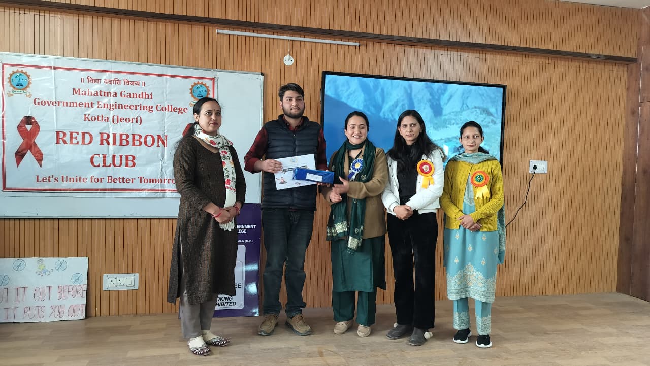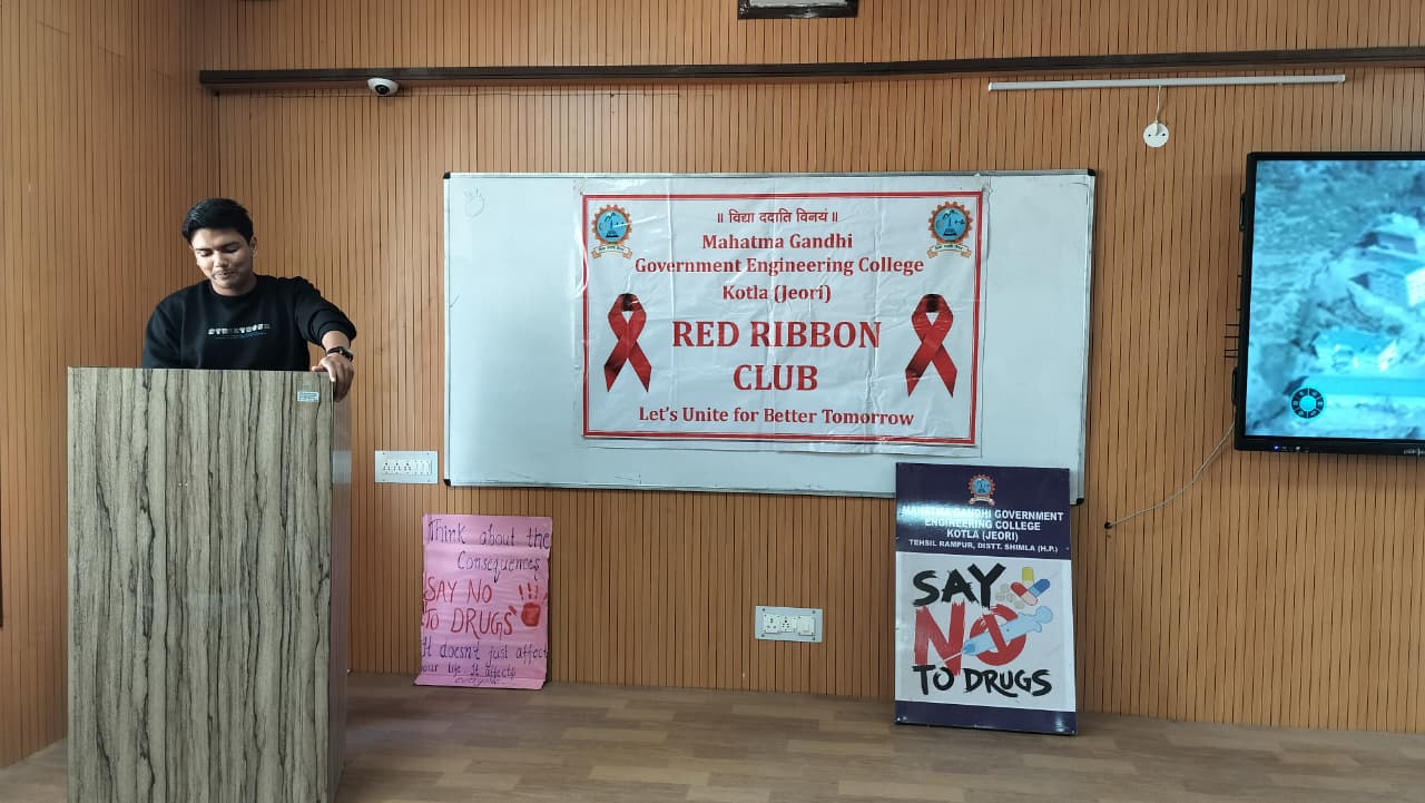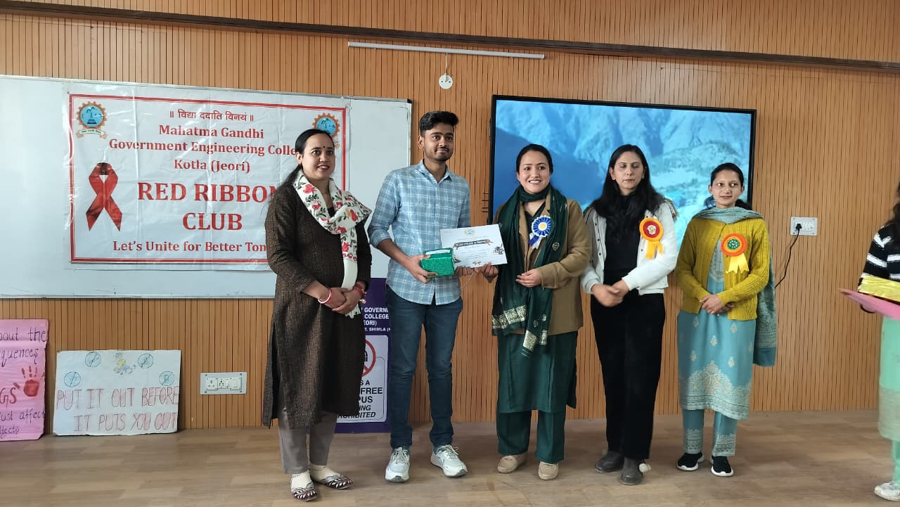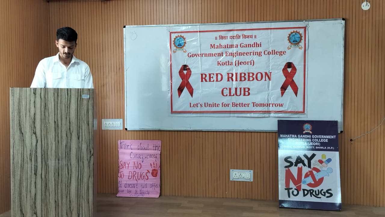 Mahatma Gandhi Government Engineering College celebrated Youth Day with great enthusiasm under the Red Ribbon Club, aiming to promote social awareness, leadership, and positive energy among youth. The event began with a lamp-lighting ceremony by dignitaries and was graced by distinguished guests from NGOs, health departments, and local ASHA workers. The programme featured cultural performances, a declamation competition, songs, a pledge on HIV awareness, and an awareness session on health and social issues. Special guests included Ms. Pratibha Kumari (President, NGO Association of Social Health) and Mrs. Bindu (Mahatma Gandhi Government Hospital, Khaneri, Rampur), along with other eminent personalities.