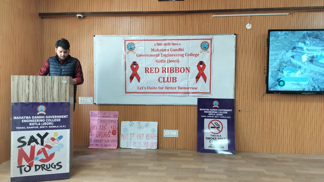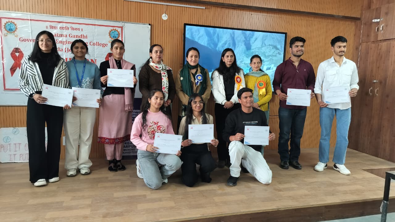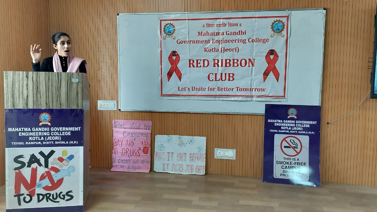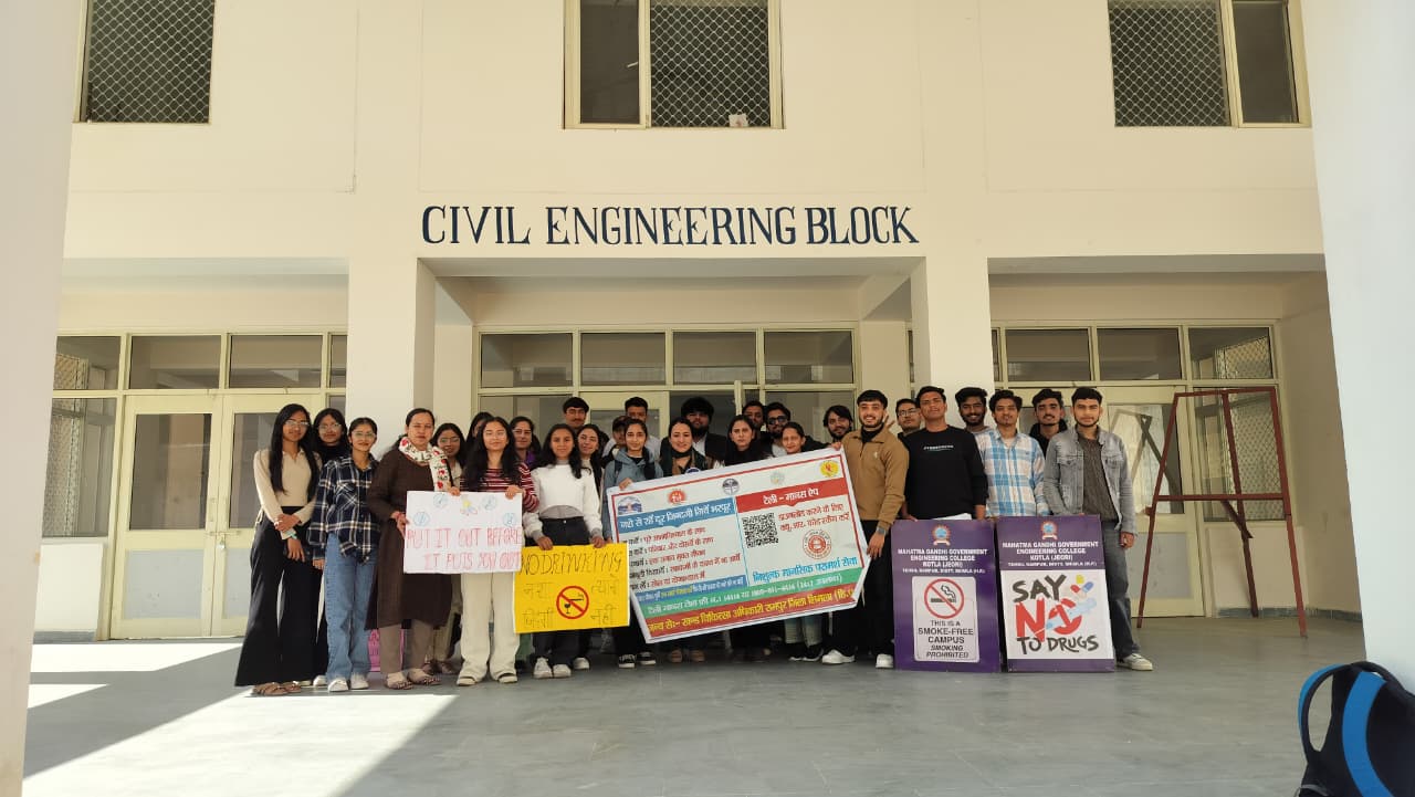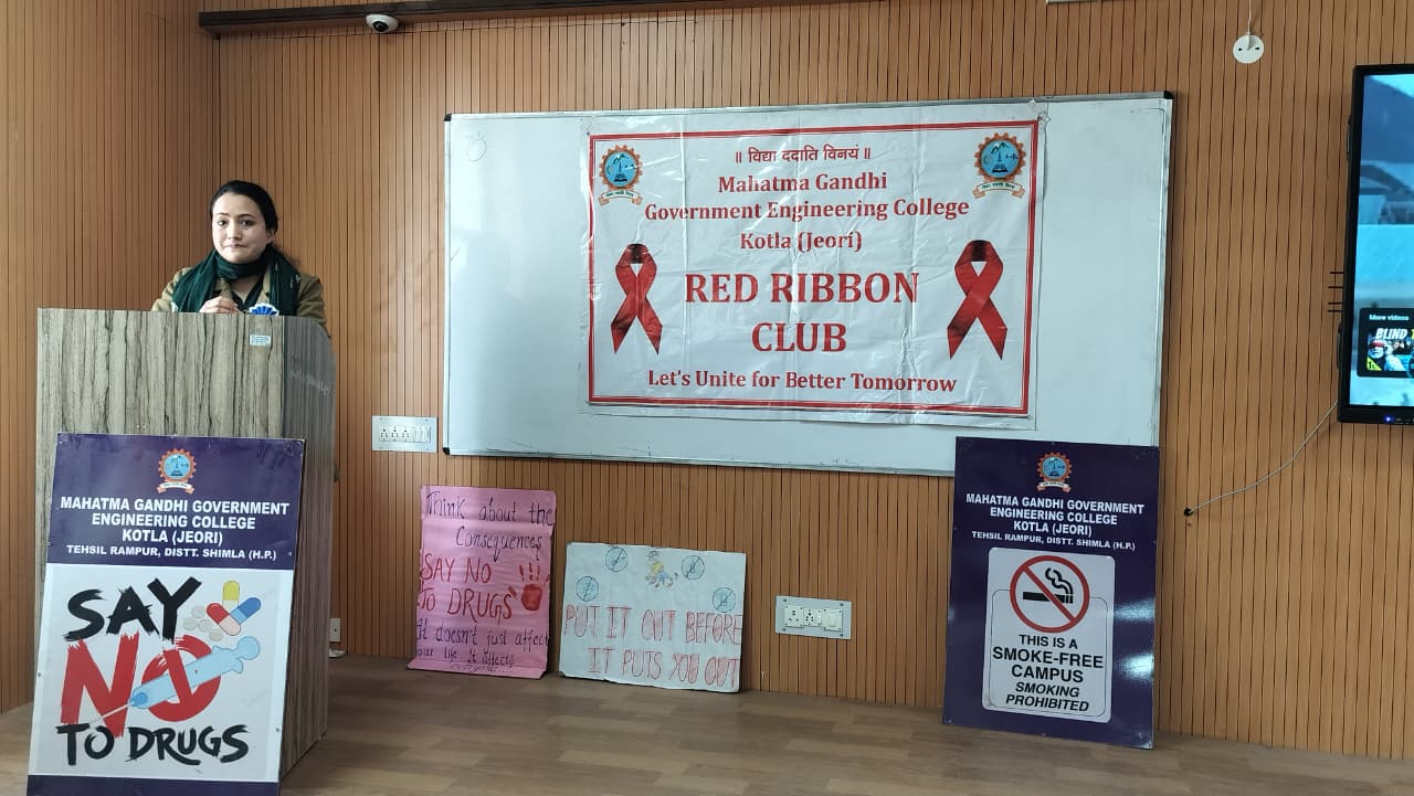 Mahatma Gandhi Government Engineering College celebrated Youth Day with great enthusiasm under the Red Ribbon Club, aiming to promote social awareness, leadership, and positive energy among youth. The event began with a lamp-lighting ceremony by dignitaries and was graced by distinguished guests from NGOs, health departments, and local ASHA workers. The programme featured cultural performances, a declamation competition, songs, a pledge on HIV awareness, and an awareness session on health and social issues. Special guests included Ms. Pratibha Kumari (President, NGO Association of Social Health) and Mrs. Bindu (Mahatma Gandhi Government Hospital, Khaneri, Rampur), along with other eminent personalities.